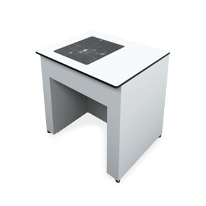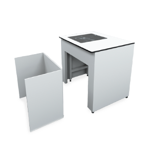 • Leg space cover manufactured in metal sheet, epoxy coated 9010 (check other options) supplied preassembled with HPL worktop and x4 leveling feet articulated with rubber base at its base.
