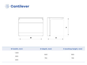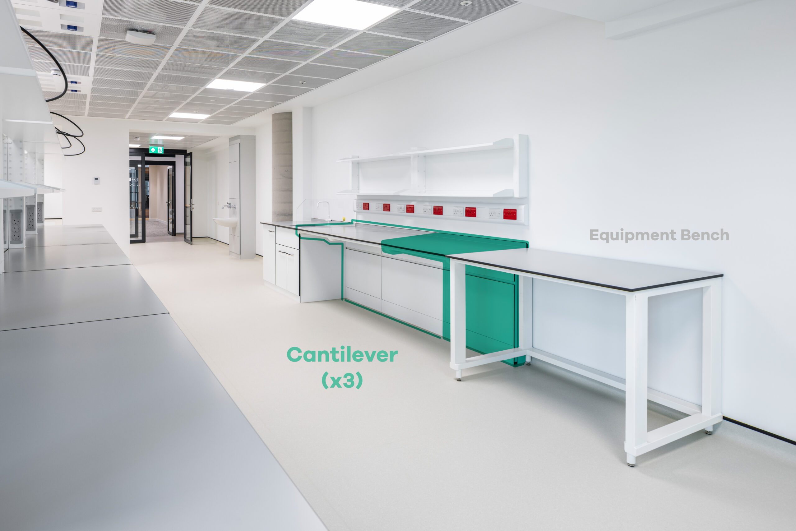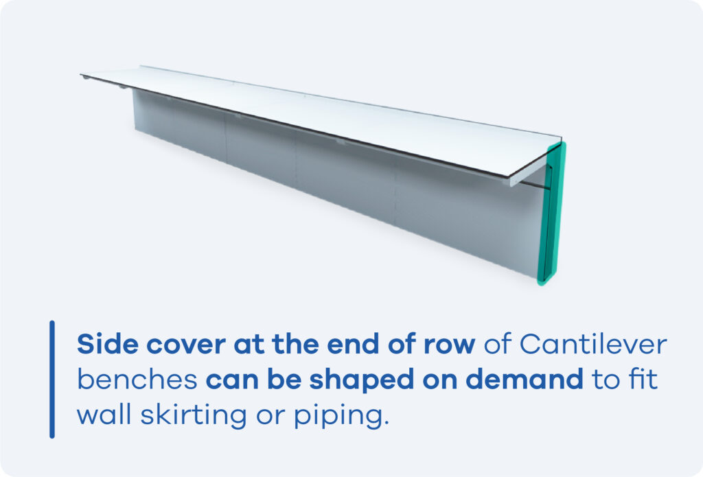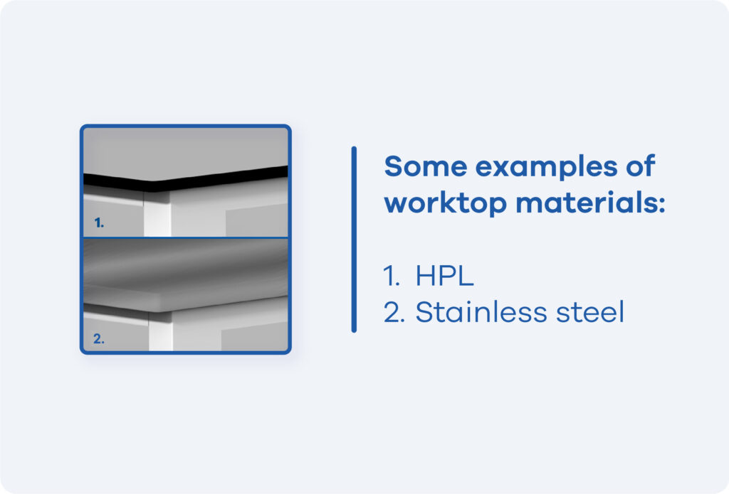 - Worktop material on demand. Advised HPL 16 mm high chemical resistance.