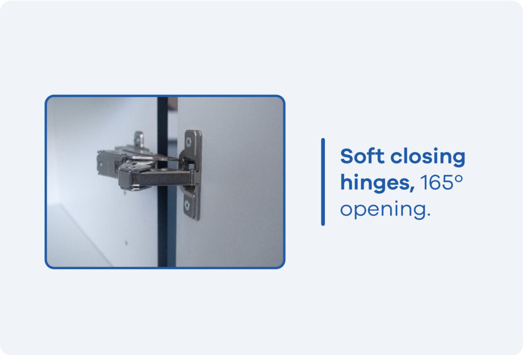 - Soft closing hinges opening 165º. Optional 270º opening hinge.