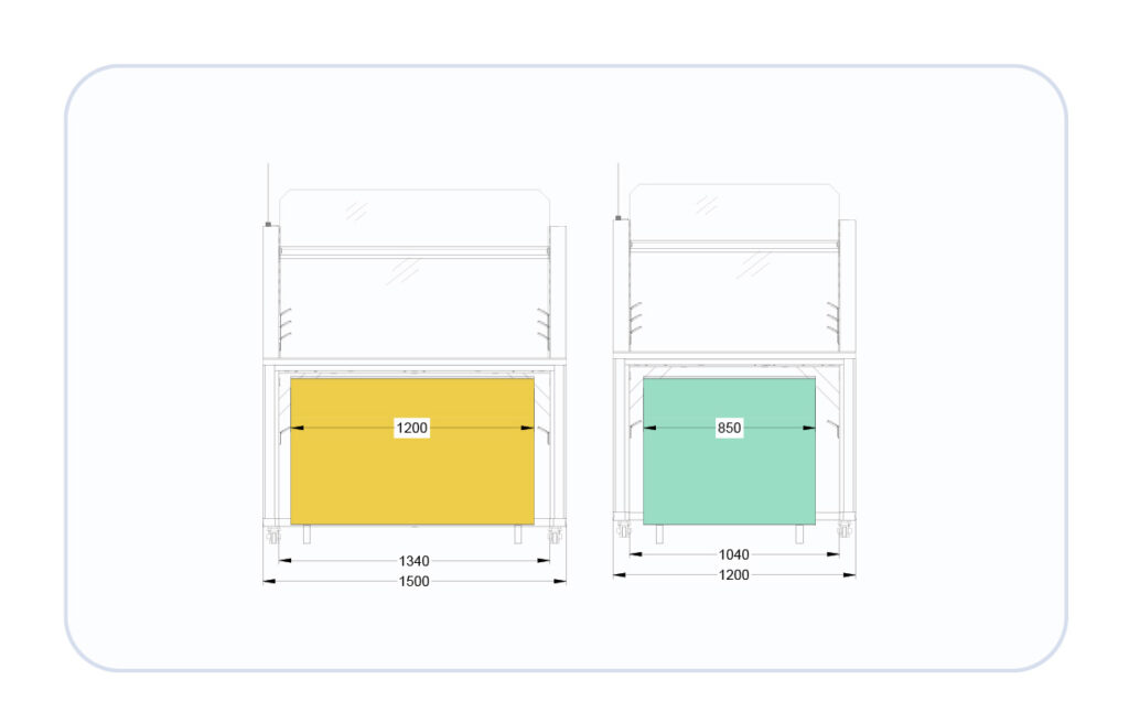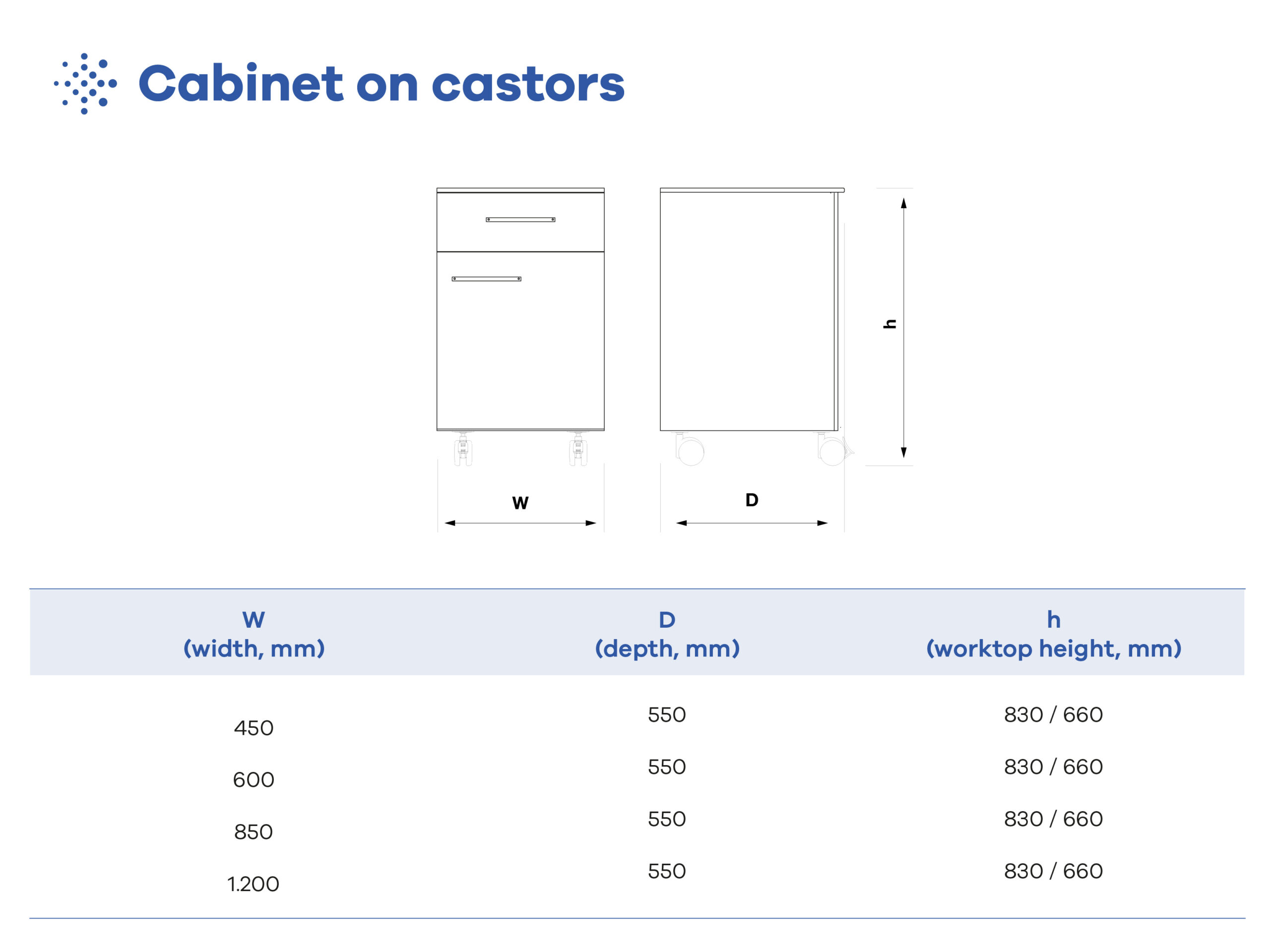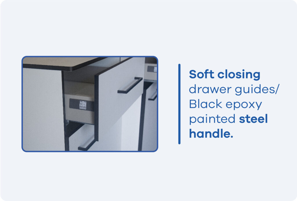 - Body manufactured fully with 16 mm melamine with black PVC edging (advised) or 16 mm HPL.