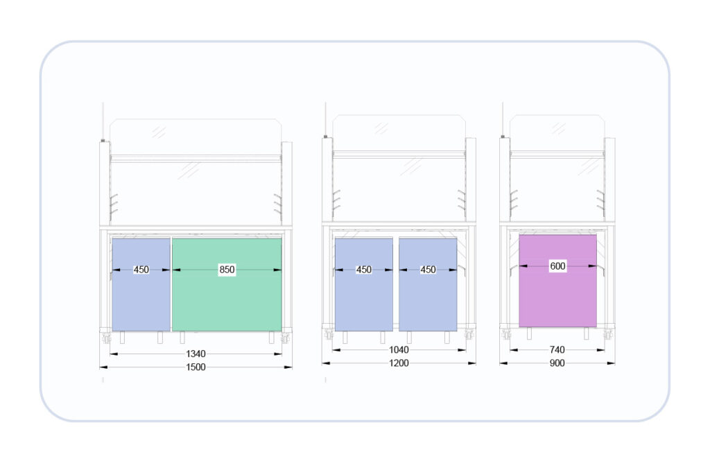 A modular range of cabinet sizes and types, designed for flexible combinations.