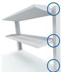 Shelf back is distanced from column back to allow for hosing, data cabling o equipment cabling to run from top to worktop level.