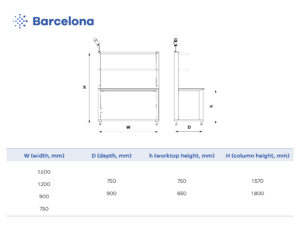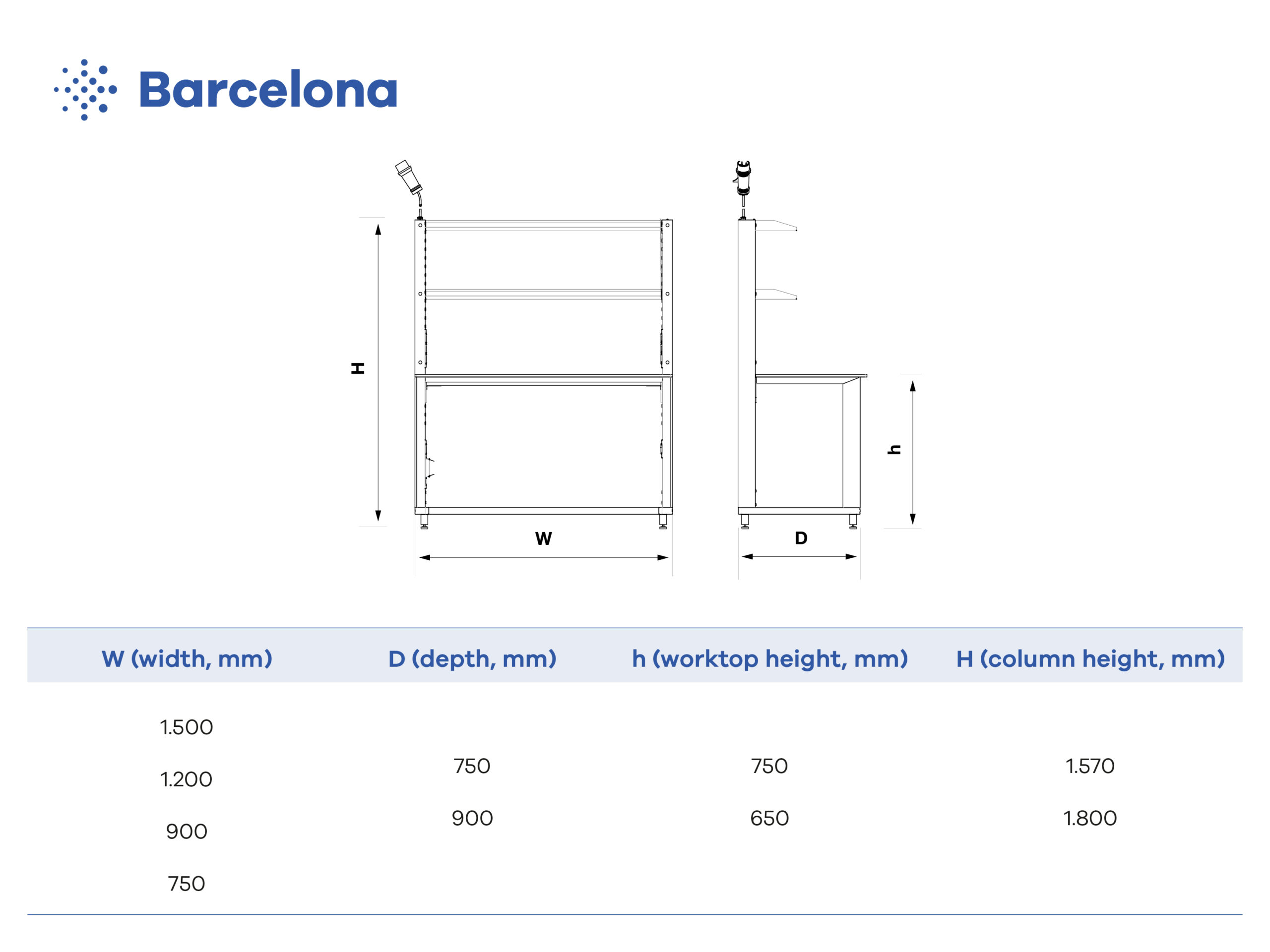 - Worktop material on demand. Advised HPL 16 mm high chemical resistance.