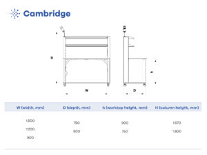 - Worktop material on demand. Advised HPL 16 mm high chemical resistance.