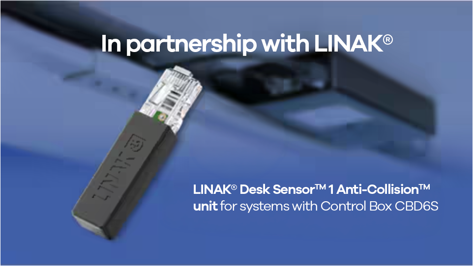 The LINAK Desk Sensor™ 1 (DS1) is an Anti-Collision™ solution developed to help prevent damage to both the desk and surrounding elements during movement.