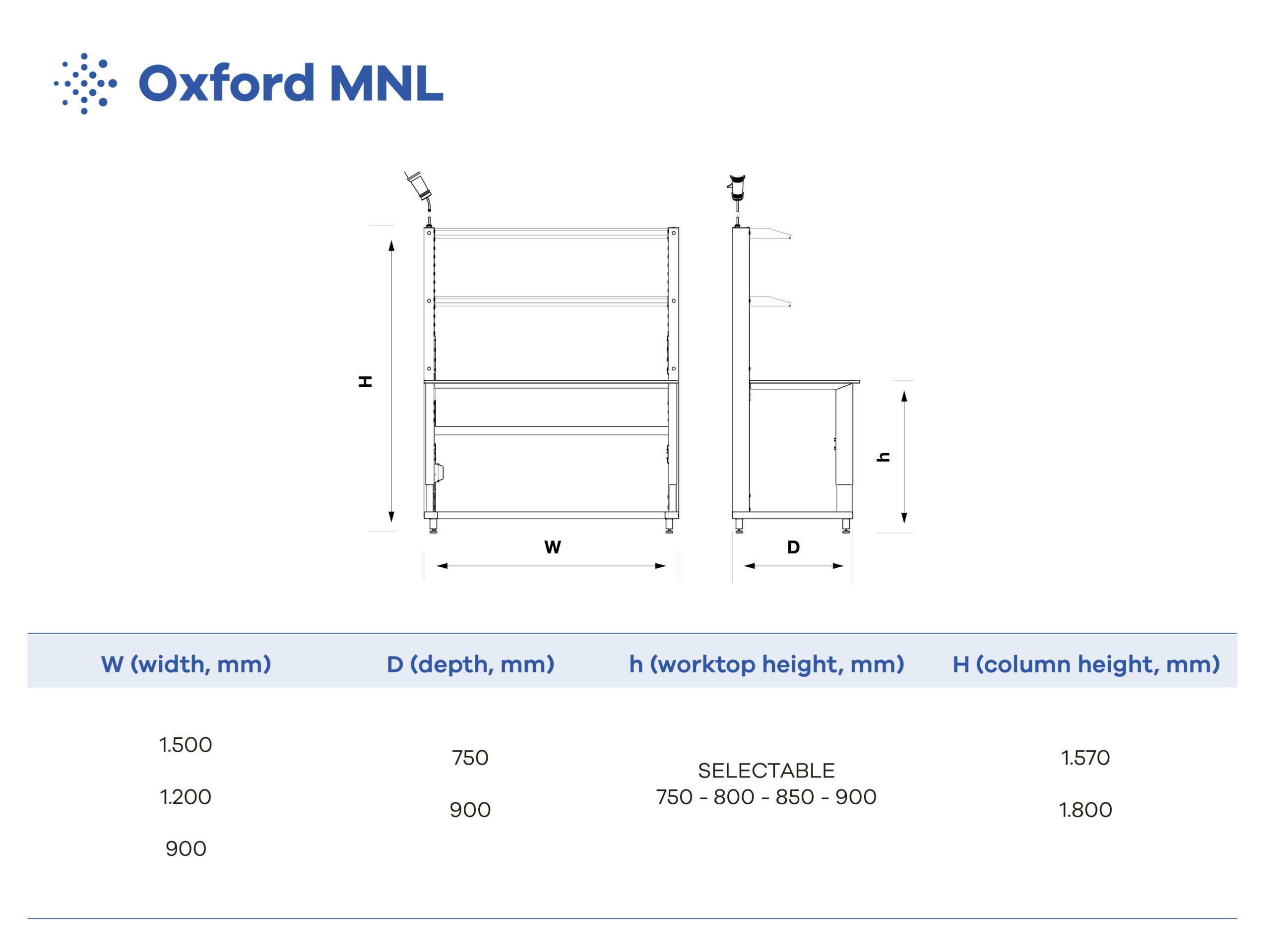 • Worktop material on demand. Advised HPL 16 mm high chemical resistance.