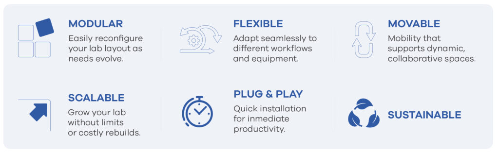 A modular, agile working system that can be reconfigured without structural intervention, adapting quickly to the evolution of the project, the team, or the scientific process.
