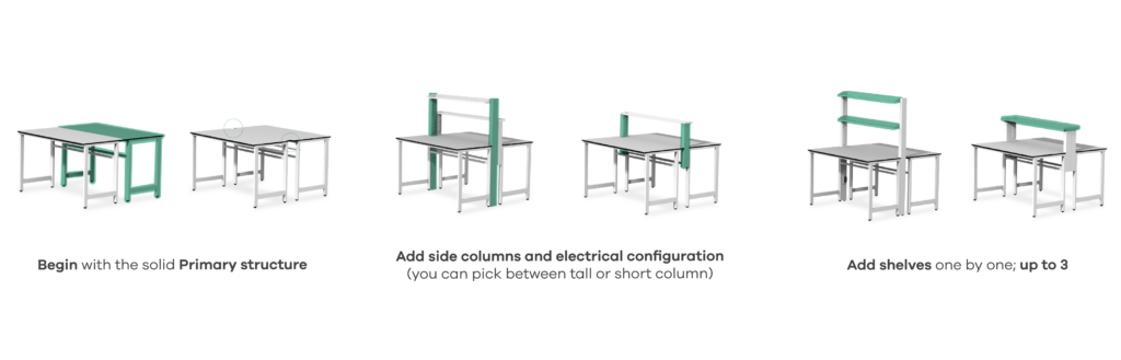 With one base frame, endless lab scenarios. Example configuration built from our Primary Bench: